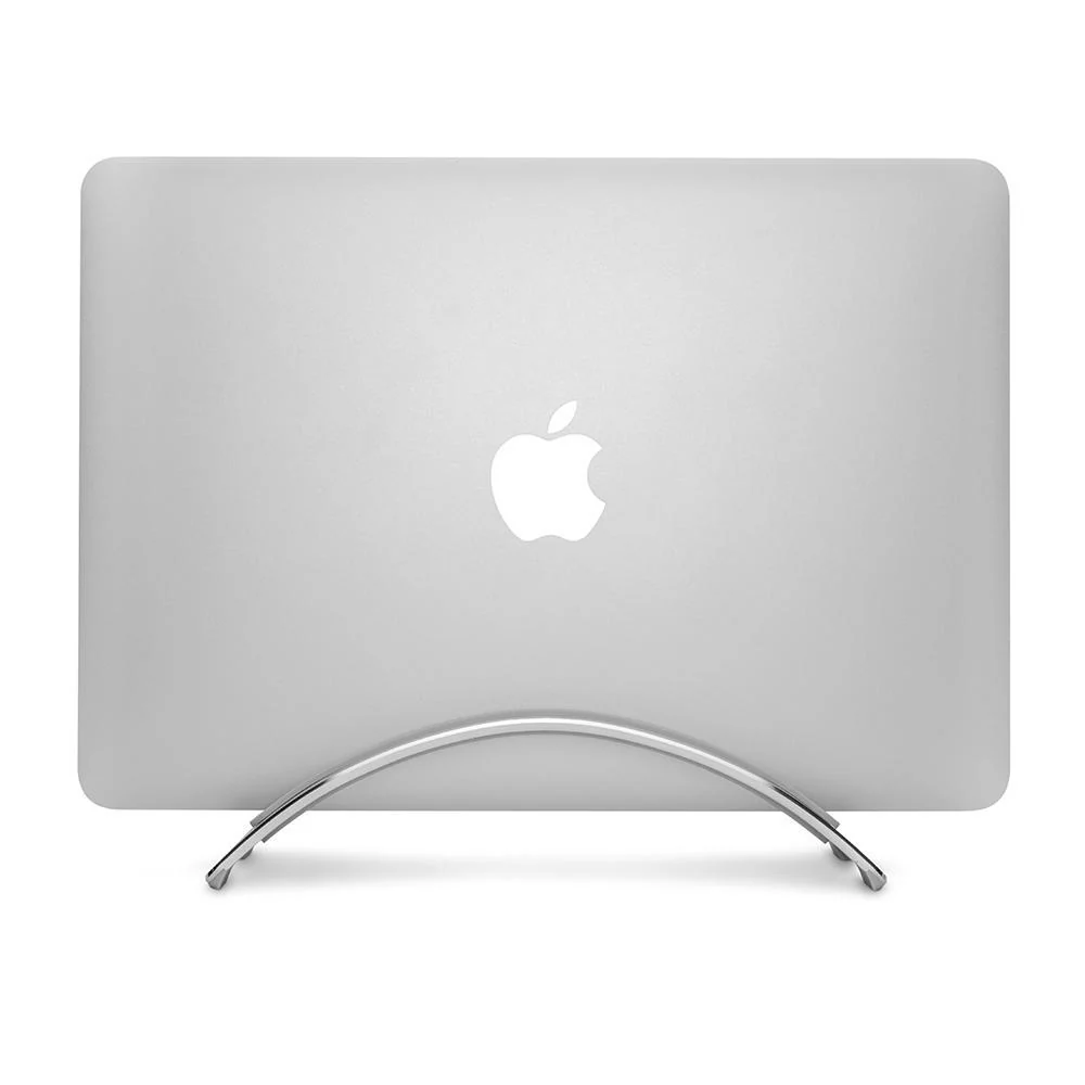 Make room for a big monitor by holding your MacBook vertically, off of your desk, with BookArc. Set MacBook atop BookArc, plug in your favorite external monitor, keyboard & mouse and now you've turned your compact laptop into a comfortable desktop setup. Photo editing, spreadsheets and other projects are easier to see on a bright 24-inch (or bigger) screen while your MacBook runs the show behind the scenes. When it's time to go mobile or head out for a meeting, unplug your desktop connections and the BookArc Cable Catch will keep them in place for you.