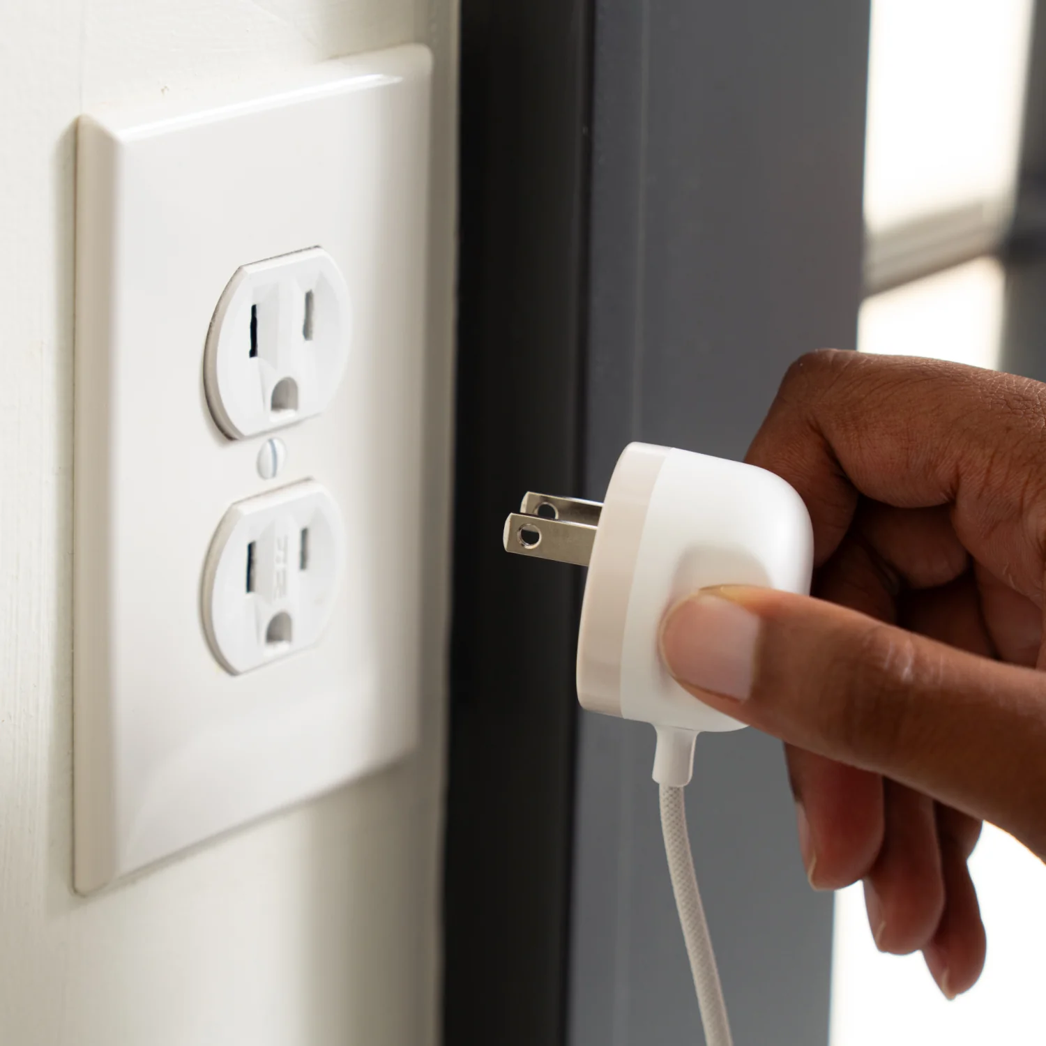 - Low-profile plug fits easily in tight spaces.